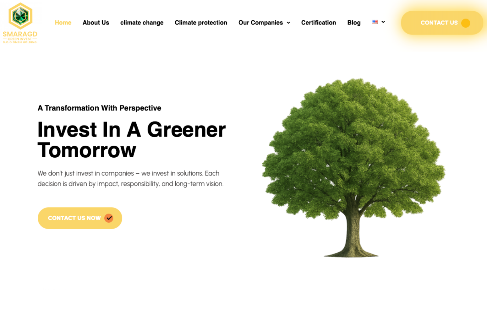 Für Smaragd Holding wurde eine professionelle Unternehmenswebsite entwickelt, die die Vision und Projekte des Unternehmens digital präsentiert. Ziel war es, eine Plattform zu schaffen, die Investoren, Partnern und Interessenten einen klaren Überblick über nachhaltige Investmentstrategien, Portfolio-Unternehmen und Umweltprojekte bietet.
